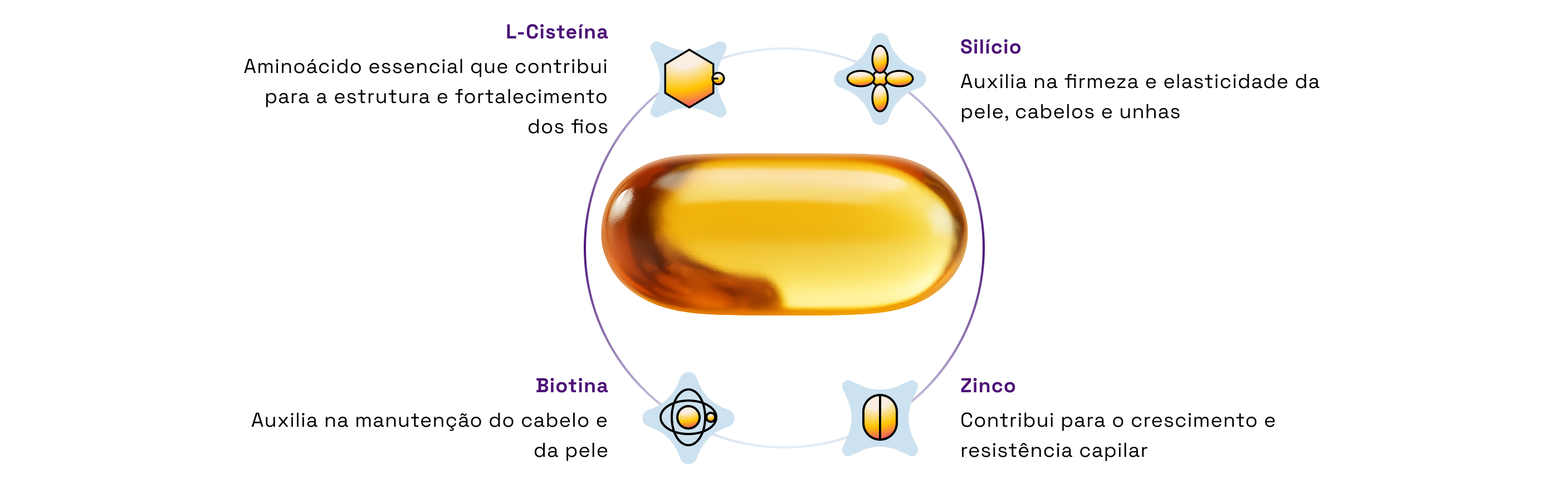 • L-cisteína para estrutura e resistência• Silício para elasticidade e firmeza